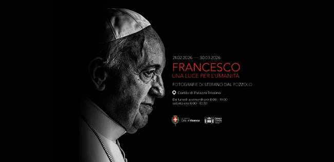 “Francesco. Una luce per l’umanità” è il titolo della nuova mostra fotografica promossa dal Comune di Vicenza, allestita nel cortile di Palazzo Trissino, spazio culturale nel cuore della città. L’esposizione ripercorre, attraverso trenta stampe del fotografo vaticanista vicentino Stefano Dal Pozzolo, i dodici anni del pontificato di Papa Francesco, offrendo uno sguardo intimo e in gran parte inedito sul suo magistero.